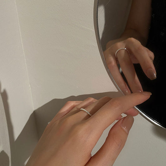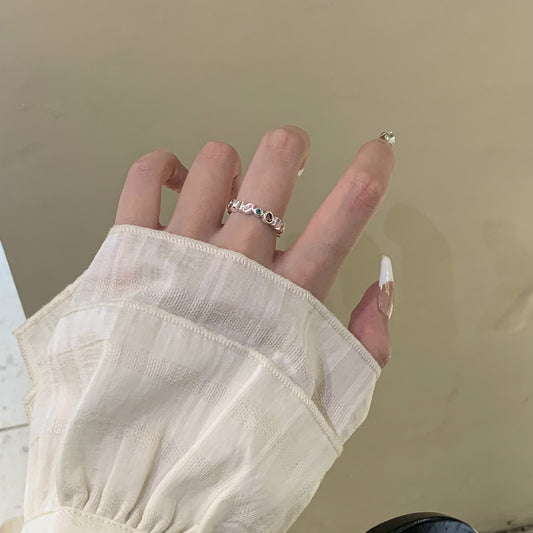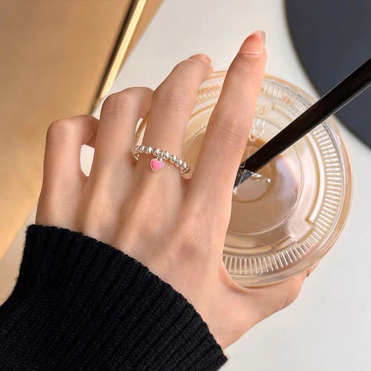 Sterling Silver Beaded Ring with Enamel Heart Charm