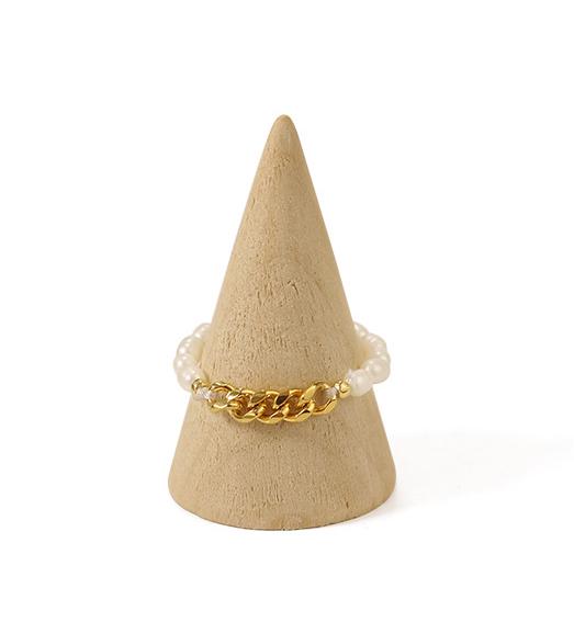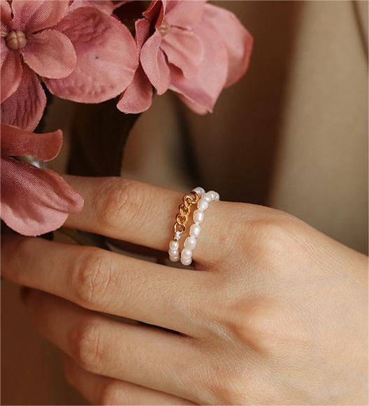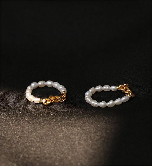 Gold Plated Brass Natural Pearl Chain Ring with Golden Braid