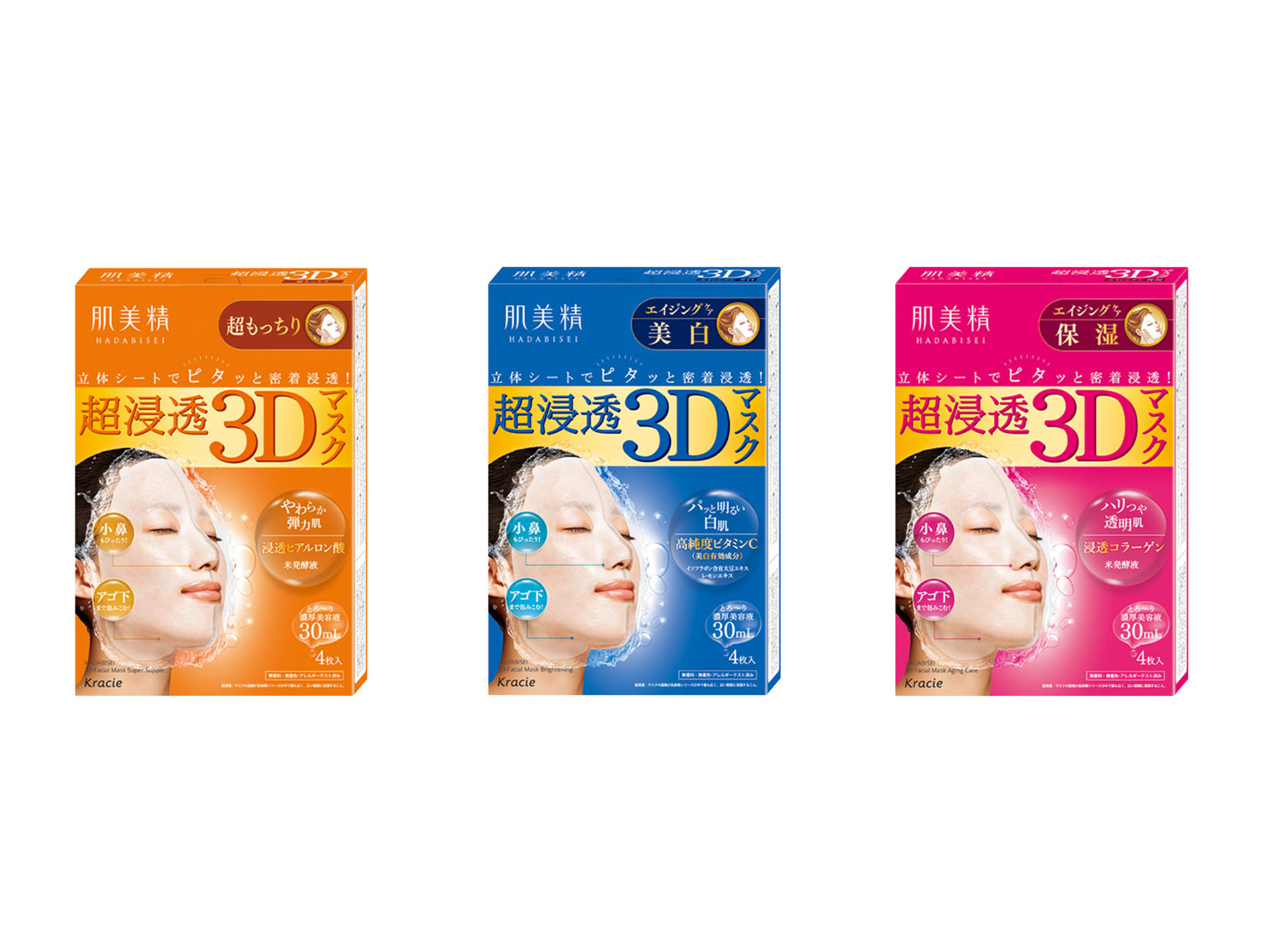 3D face masks that perfectly fit the undulations of the face! Filled with rich, creamy serum for a strong moisturizing effect.