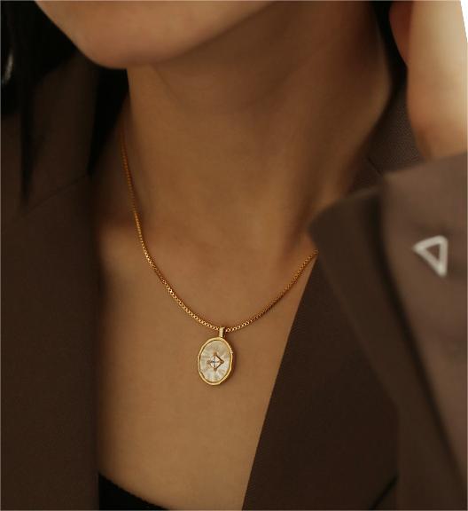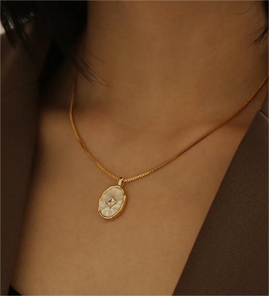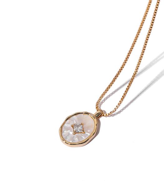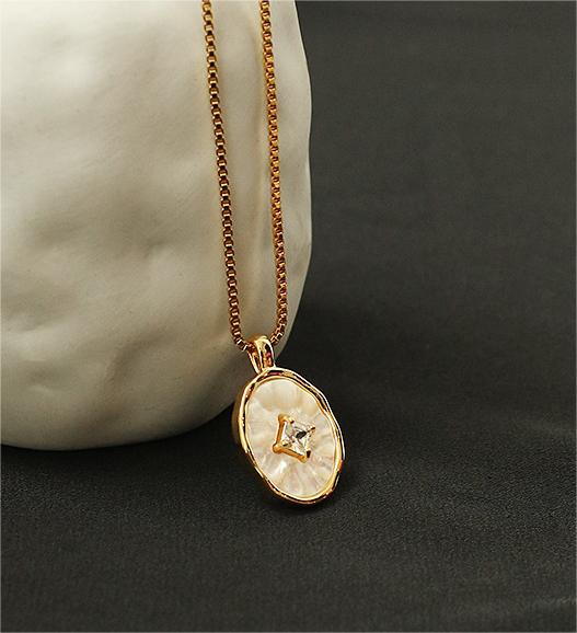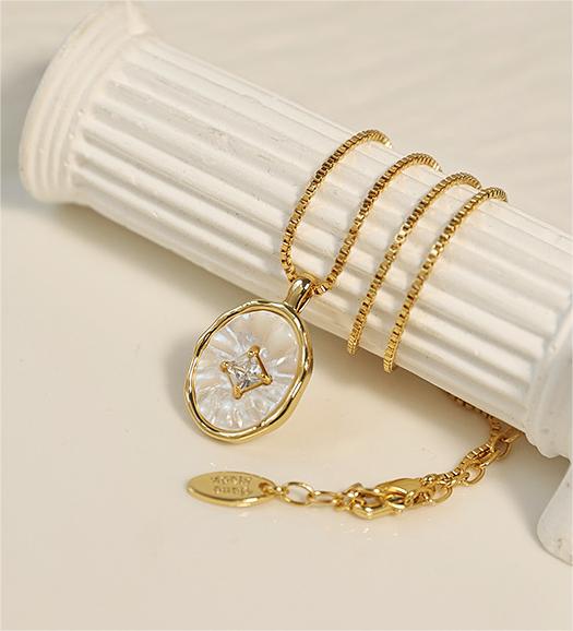 Natural Mother-of-pearl Pendant Necklace with Zircon Inlay and Gold Plated Brass