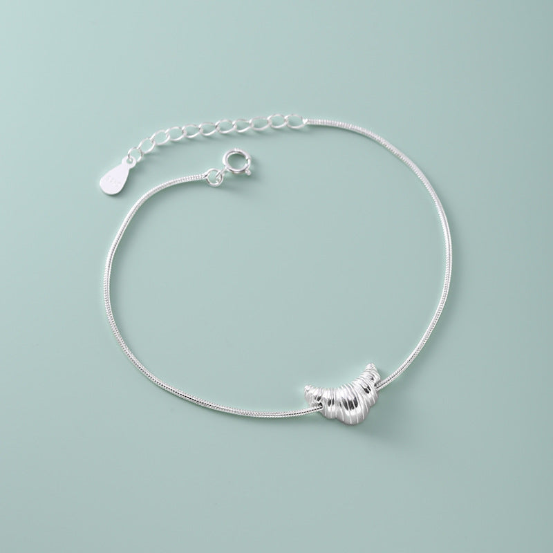 Sterling Silver Croissant Pendant Snake Chain Bracelet