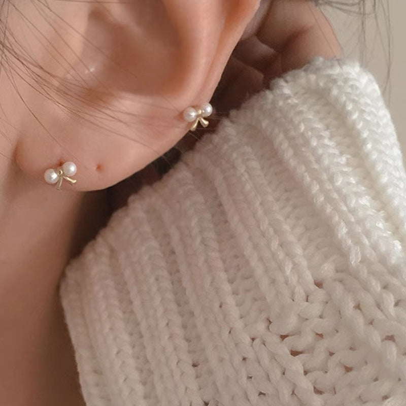 Sterling Silver Mini Bow Tie Ear Stud with Pearls