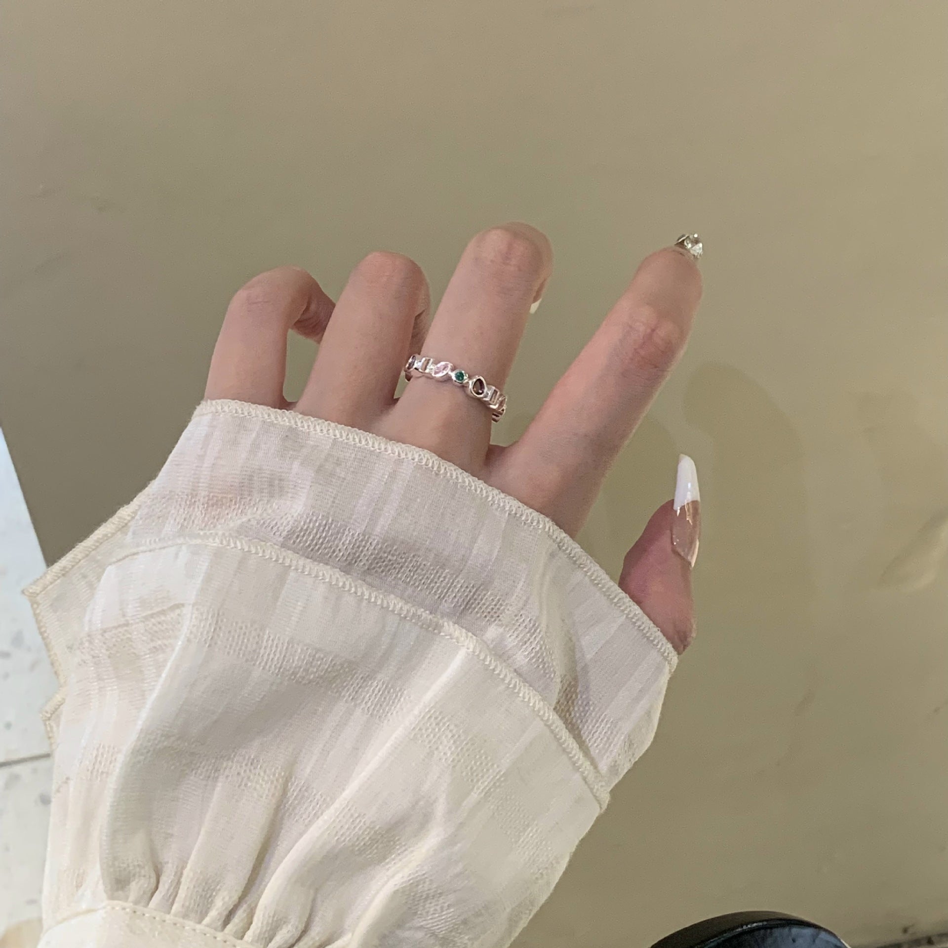 Sterling Silver Open Ring with Colorful Zircon