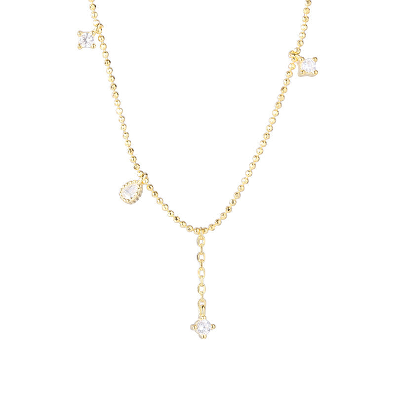 Sterling Silver Tassel Necklace with Small Zircon Charms